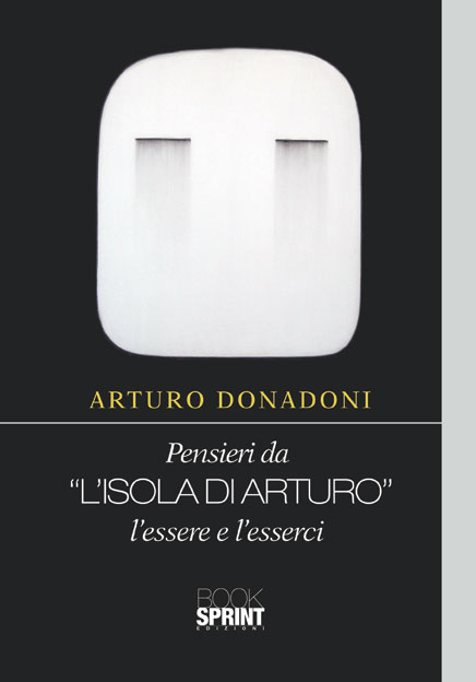 Altri segni in uno studio: Forse in qualche pausa, forse sospendendo improvvisamente il dipingere come preso di soprassalto da un’altra idea ; forse avendo trattenuto lo spunto di un incontro che, in quel momento, chiedeva di essere fissato, “L’isola di Arturo” – lo studio dove Donadoni dipinge – si è popolato nel tempo di un’altra, complessa, immagine: frasi, “pensieri improvvisi” se vogliamo rubare il titolo a Sinjasvkij...